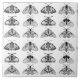 Azulejo cerâmico em um padrão detalhado e belo de mariposas em preto e branco, com sombras de cinza sobre fundo branco