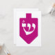 Magenta dreidel com a carta hebraica brilhando para as celebrações do feriado judeu de Chanucá. Tradicionalmente, durante as férias de Chanukah, crianças (e muitas vezes adultos) jogam um jogo de risco seguro com um sonho (ou sevivon no hebraico moderno). Nas quatro paredes há as letras hebraicas Nun, Gimmel, Ei, e Shin, que representam a frase Nes Gadol Haya Sham, ou, Um milagre excelente aconteceu lá. Junto com a menorah (chanukiyah), os sonhos são os símbolos populares de Chanucá (Festival das Luzes). design de excelente para um cartão Chanukah significativo! O cartão está vazio atrás, mas se você quiser que eu inclua sua mensagem pessoal - entre em contato comigo: jmm.judaica@gmail.com