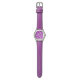 Um padrão repetitivo se espalha através de um brilhante fundo magenta neste relógio divertido e engraçado.