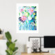 Impressão de Arte Arquivada da pintura tradicional a aquarela, com lírios, lírios, gafanhotos e caules que incorporam a arte do rabisco. As cores incluem indigo, rosa, verde, turquesa e azul. Tamanho máximo 24x32" (60,96 x 81,28 cm).
