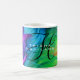 Café Mug com salão de cabelo ou cabeleireiro inspirado em fundo; cores de cabelo roxo, azul, verde e laranja. Sua inicial aparecerá em preto, seu nome em branco. - As fontes e as cores da fonte podem ser alteradas. Acessórios decorativos correspondentes são vendidos separadamente. Design HAMbyWhiteGlove aka HAMbWG.