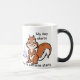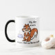Esta caneca agradável tem um clipart dos desenhos animados de um esquilo e de uma chávena de café em ambos os lados com as palavras: "Meu dia começa quando a cafeína começa." Um design amusing para amantes do café. Faz um presente agradável.