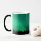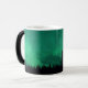 Sente-se para trás e olhe-se a aurora boreal bonita aparecer em seu copo de café como você aprecia sua bebida quente favorita. Foto original Alaska recolhido por S. Coxwell
