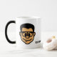 Caneca de boa qualidade, bom tamanho, não parece ser aquela louça que trinca ou descasca. Com os cuidados necessários, irá ter boa durabilidade. Antes de se colocar a bebida quente, ela fica preta, mas numa cor bem brilhante. Meu namorado é DJ e encomendei esta caneca pra um café da manhã com o pessoal da equipe! Sei q será o maior sucesso...em breve sei q vão pedir pra eu encomendar pra eles, e penso em fazer com o nome da empresa também. A caneca é muito legal, a coisa da trasmutação...mas o q não ficou muito legal foi a impressão da imagem da foto, não ficou como a foto q enviei...sei q mandei uma foto q é uma sombra, mas se as cores q estão em voltam aparecessem, ficaria bom. Na parte da frente ficou boa, mas atrás dele, a iluminação azul não saiu, ficando assim muito escuro, e não dá pra ver q é a sombra de uma pessoa. Se a Zazzle tivesse me enviado um e-mail dizendo q isso aconteceria, eu teria enviado uma foto mais clara, mas como a imagem de teste q tenho no site está nítida, pensei q fosse ficar assim. O chato q a caneca é presente, e a pessoa q ganhou, não consegue se ver na foto. Ficou sem propósito no final das contas. =(