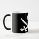 Esta caneca começa toda o preto até que você lhe adicione uma bebida quente, então o crânio & os ossos--ou mais precisamente--As espadas cruzadas estão para fora!