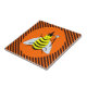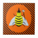 Este azulejo incrível apresenta uma linda bruxa amarela de abelhas com listras pretas. A Abelha tem grandes listras pretas brilhantes e pequenas antenas pretas bonitinhas. As asas da abelha são dobradas para parecer uma capa. A abelha está vestindo um chapéu preto alto com estrelas laranja e roxa sobre ela. Ela também segura uma varinha mágica em forma de estrela e brilha com muitas cores diferentes. O fundo é um padrão de listras laranja e pretas.