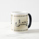 Quando está fria, é apenas uma caneca preta simples. Quando você adicionar toda a bebida quente (água, chá, café, etc.), seu nome vem à vida em cores vibrantes.