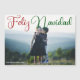 Belo cartão magnético fotográfico da família Feliz Navidad com bela caligrafia em vermelho e verde. Este moderno cartão de fotografia de Natal espanhol apresenta um belo roteiro e o seu nome em branco sobre a imagem de sangria do cheio.
