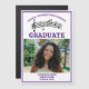Este cartão magnético de anúncio de graduação do coro roxo segundo grau personalizado apresenta um funcionarios musical fofo com clave tripla e notas para uma classe de formando 2024 acima de sua foto de retrato do mais velho. Personalize com o seu ano de graduação com a fotografia de um ímã de graduação de escola de música personalizada de excelente.