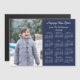 Envie seus desejos de um Feliz ano novo com um cartão de ímã de 2026 personalizado com sua foto à esquerda e sua saudação e nome acima. Substitua a imagem de exemplo e o texto na barra lateral. O texto personalizado está em uma fonte legal de script manuscrito branco. Abaixo está um calendário branco sobre um fundo azul marinho. Para alterar a cor de fundo, toque em "Editar este design" e selecione uma cor de fundo na barra lateral. Clique em "Concluído" e em "Adicionar ao carrinho" para comprar o ímã de calendário personalizado. Modelo de cartão magnético e design de calendário © Claire E. Skinner. Todos os direitos reservados. Fotografia © Storytree Studios, Stanford, CA