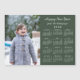 Envie seus desejos de um Feliz ano novo com um cartão de ímã de 2026 personalizado com sua foto à esquerda e sua saudação e nome acima. Substitua a imagem de exemplo e o texto na barra lateral. O texto personalizado está em uma fonte legal de script manuscrito branco. Abaixo está um calendário branco de 2026 sobre um fundo verde escuro. Para alterar a cor de fundo, toque em "Editar este design" e selecione uma cor de fundo na barra lateral. Clique em "Concluído" e em "Adicionar ao carrinho" para comprar o ímã de calendário personalizado. Modelo de cartão magnético e design de calendário © Claire E. Skinner. Todos os direitos reservados. Fotografia © Storytree Studios, Stanford, CA