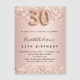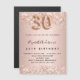 Para um aniversário de 30 anos elegante. Um fundo rosa dourado. Decorado com ouro rosa, brilho rosa, brilhos. Personalize e adicione um nome e detalhes da festa. O nome é escrito com um script de estilo manuscrito, número 30 com fontes de estilo de balão.