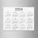 Uma simples imã de geladeira de calendário clássica 2024 com letras pretas em um fundo branco. Você pode até adicionar mais texto ou imagens, personalizar a cor de fundo.