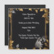 Convite personalizado para casamento em prata e uma armação de ouro em preto com um envelope preto