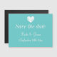 O magnético do casamento azul-turquesa salva o cartão de data. Fácil de pendurar na geladeira. Um lindo ícone de amor vintage. Elegante modelo de design para lembrar os convidados do seu dia especial.