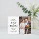 Um cartões de agradecimentos de fotografia moderno com texto editável e letras brancas. Sinta-se à vontade para personalizar a noiva e juntar fotos e texto.