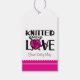 Design de texto gráfico bonito com uma bola em forma de coração de etiqueta de presente de lã em branco, preto e rosa claro. Personalize com seu próprio nome ou mensagem. Atualmente, lê Knit com amor de Emily May. Ideal para vender ou dar como presentes seus artigos feitos à mão. Design original de Sarah Trett.