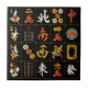 Azulejo cerâmico atrativo com azulejos preto Mah Jongg com sotaques laranja, amarelo e branco. Adicione um quadro para fazer uma trivit ou uma caixa para um acessório especial de mesa.