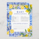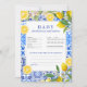 Perfect for lemon-themed baby showers, Italian summer parties, and Mediterranean-inspired events, this baby shower advice and predictions card invites guests to share sweet wishes, parenting tips, and fun baby predictions for the parents-to-be. The blue and white Mediterranean tiles paired with fresh citrus lemons create a stylish, modern yet timeless look that photographs beautifully.