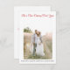 Compartilhe a notícia de que você está adicionando mais alegria no próximo ano com este anúncio de gravidez de feriado bonito. Adicione uma foto à frente do cartão e crie sua própria mensagem pessoal na parte traseira do cartão. Este é o cartão de natal perfeito para que sua família e amigos saibam que você está esperando um bebê no ano novo.