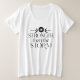 Camiseta personalizada de mulheres mais camiseta de tamanho com uma citação inspiradora "Mais forte que a tempestade" em tipografia serif com lua celestial e símbolos visuais espirituais.