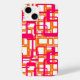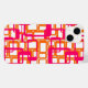 Esta capa de telefone tem um design moderno século médio de retângulos abertos, cor-de-rosa, sobre retângulos abertos, em laranja.