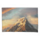 Este design apresenta uma imagem impressionante de um pico de montanha com capa de neve. A luz está a passar do sol de pôr e há uma tonalidade de ouro para as nuvens no céu, que pode ser vista como um símbolo de esperança.