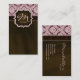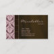 Cartão de visita de cosmetologia para unhas ou salões de cabelo ou Spa com cor damasco floral/floral bonito a rosa e marrom e chocolate como fundo com moldura de monograma. Excelente para qualquer avon ou mary kay rep.