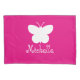 Maleta personalizada do quarto de meninas com borboleta. Um travesseiro bonito para o quarto de crianças com inseto animal. Divertido decoração de casa para o quarto de crianças. Design de ilustração de tendências para filha, neta, primo, etc. Cores cor-de-rosa ou personalizadas neon.