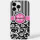 Listras modernas, cor-de-rosa, pretas e brancas, monogramadas, com iPhone 14 Pro Max Case.