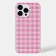 Mala de telefone celular com padrão de xadrez cor-de-rosa suave.