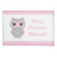 Palhaço de Natal de Nome Personalizado, Invertido. Rosa, cinza e branco. Coruja-bebê bonita e Feliz Natal + nome personalizável na frente, e seu texto personalizado na parte de trás. Escreva aqui as palavras que seu coração está falando ou deixe este texto como está. Por favor, note que o floco de neve no verso está móvel, então você pode ajustá-lo de acordo com seu texto.