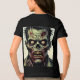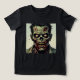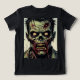 Zombie temeu a camisa do Dia das Bruxas com um zumbi de pop art, estilo quadrinhos legal, com um rosto verde sangrento.