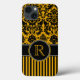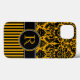 Damasco preto e ouro amarelo monograma, com padrão de listras Case-Mate Bavery Here™ iPad Air, pode ser personalizado com seu logotipo, nome, iniciais, monograma ou outro texto. Se precisar de assistência, envie um email para niteowlstudio@gmail.com.