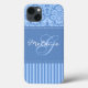 O tom moderno monograma de na moda em denim de tonalidade e cor damasco azul de pó com listras Case-Mate Low Here™ iPad Air pode ser personalizado com seu logotipo, nome, iniciais ou outro texto. Se precisar de assistência, envie um email para niteowlstudio@gmail.com.