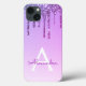 Roxo Bling Ombre Sparkle e Faux Derrubando Glitter Girly Modern Monogramo Primeiro Nome e Capa de telefone Inteligente Inicial. Entre em contato com o designer para obter itens correspondentes