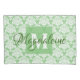 Este belo travesseiro apresenta uma cor damasco branca clássica sobre um fundo verde sábio. O design é personalizado com uma letra inicial de monograma, assim como um nome personalizável. Perfeito para qualquer quarto ou quarto. Um presente de excelente para uma garota indo para a faculdade que quer um estilo clássico mas elegante em sua cama.