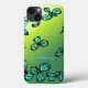 Flores brancas e pretas brancas contra um fundo verde-oliva gradiente a branco. Alterar ou remover o nome para personalizar ainda mais este caso. Certifique-se de que altera a cópia superior e a cópia sombra do texto,