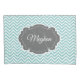 Adicione um toque de cor ao seu quarto com um Travesseiro Teal Chevron que você pode personalizar. design de caixa de travesseiro apresenta um fundo de fenda e uma etiqueta de cinza de ornamentado para personalizar com seu nome e monograma. Itens adicionais disponíveis com este design também. Entre em contato comigo diretamente para obter assistência com a personalização.