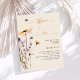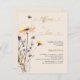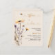 Um fundo bege. Decorado com abelhas e flores silvestres pintadas em violeta e rosa. Personalize e adicione um nome e detalhes da festa. Neutro em termos de gênero.