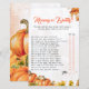 Sorriso e competição amigável no seu chá de fraldas com este maravilhoso cartão de jogo 'Mamãe ou Pai?'. Apresentando uma bela design de aquarela de gourdes e delicadas folhas de outono, acentuadas com sutis ouros, este cartão de jogo complementa perfeitamente a sua celebração sazonal. Os hóspedes vão adivinhar se a mãe ou o pai têm mais probabilidade de realizar várias tarefas relacionadas com o bebê, fazer-o como um quebra-gelo fantástico e uma atividade memorável. Incorpore facilmente todos os detalhes de eventos específicos ou perguntas personalizadas para tornar esse jogo exclusivo. Ideal para chás de fraldas de outono, encontros rústicos ou festas inspiradas na colheita, garantindo que todos tenham diversão e tempo de envolvimento.