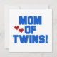 Mãe do design de texto azul gêmeo com corações vermelhos, perfeito para a mãe de garotos gêmeos em caixas de guardas gêmeos, azulejos, ornamentos, canecas, botões, mousépades, chaveiros, cartas, e muito mais!