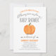 Este elegante e moderno convite ao chá de fraldas de outono apresenta um tema de outono com uma abóbora de aquarela pintada manualmente. Para um convite ainda mais memorável, selecione uma forma recortada, um papel texturizado ou um papel com espessura dupla.