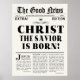 Eu criei esta falsa manchete de jornal para o cartão de Natal da família deste ano. Eu queria uma design única que expressasse a importância da época de Natal - Jesus. Como teria parecido se Ele fosse nascer na nossa cultura obcecada pela mídia? Uma história tão importante merece um título adequado! Mostre este design único no seu espaço favorito nesta época de Natal como um lembrete das melhores notícias já contadas.