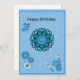 Feliz aniversário mandalas cumprimentando o cartão, com borboletas e flores para ela ou para ele. Motivos de fundo azul-teares e brancos