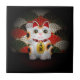 Um gato afortunado japonês, ilustrado por Megan Anderson. O kanji na moeda representa a "longevidade".