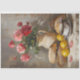Chá de manhã com pão fresco e rosas bonitos. Excelente para posters de trabalho de arte, adicionando móveis para o quarto das meninas. Cuidado com esta impressão que dá vida ao trabalho de arte.