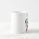 A caneca branca com o logotipo famoso do bar de esportes do GG - aprecie seu "cabelo do cão" no estilo.