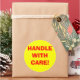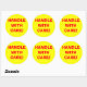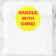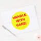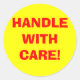 Estas etiquetas de aviso de envio redondo amarelas têm "MANUSEIRA COM CUIDADO!" em letras grandes e vermelhas. Este design pode ser comprado como está ou você pode usá-lo como um modelo para fazer seu próprio design de etiqueta de remessa.