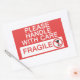 Sticker diz "Por favor, trate com cuidado - Frágil" com uma fotografia de um vaso partido atravessado.